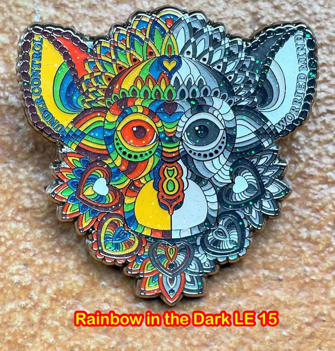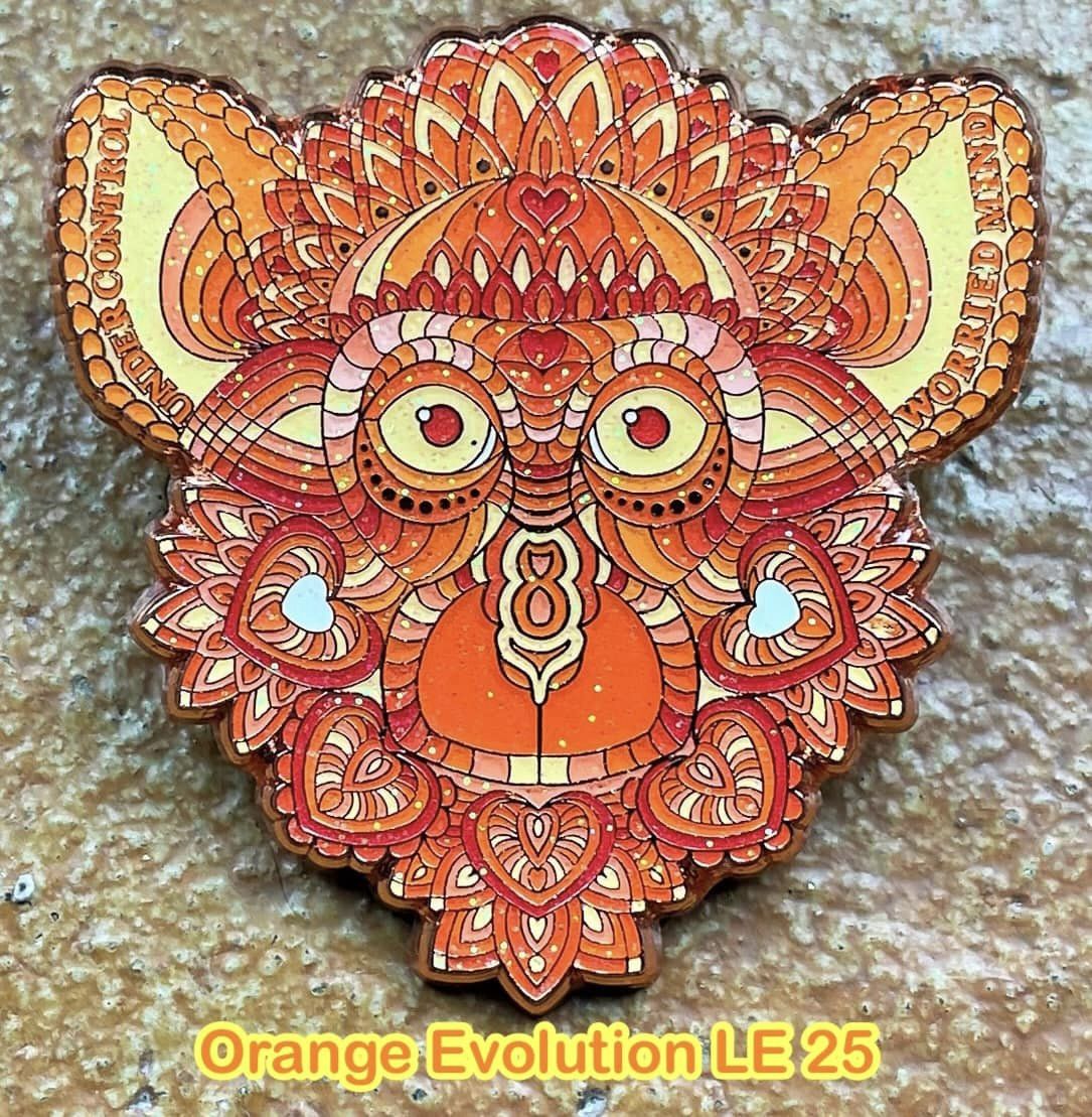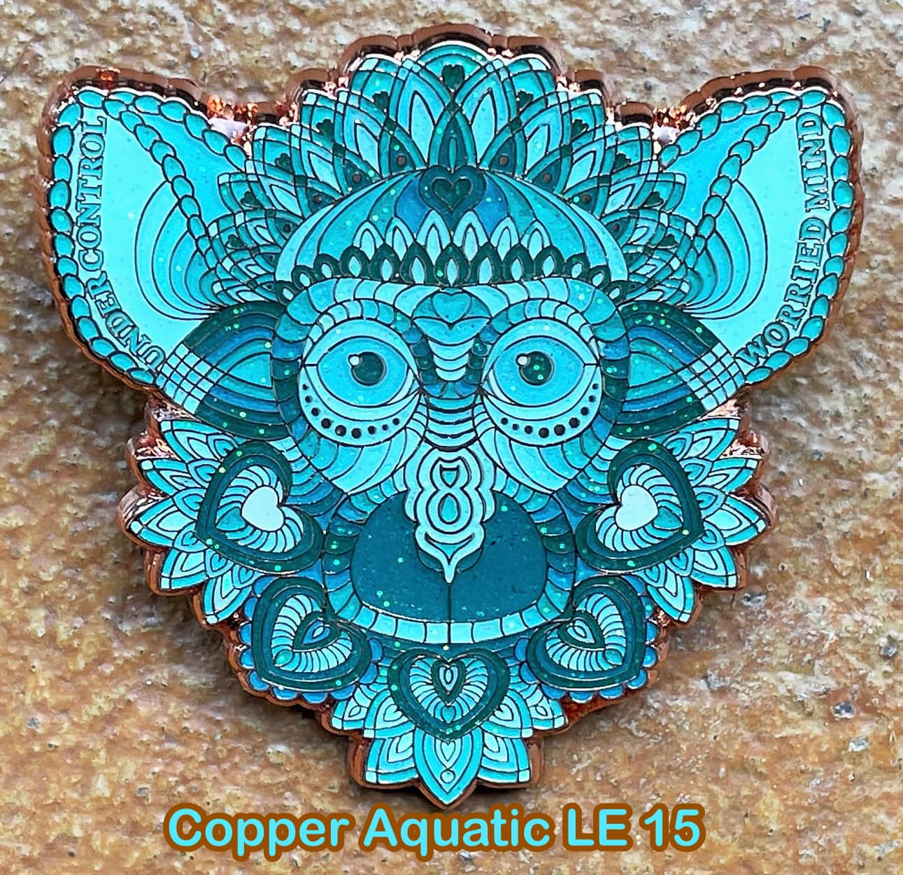 Bobby sang us The Monkey and the Engineer many, many times. While designing this pin, we decided the human is state of mind is somewhere between, Under Control and having a Worried Mind. Although the writer never intended this, once realized, I could never undo the thought.