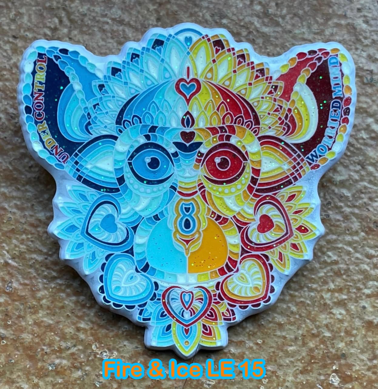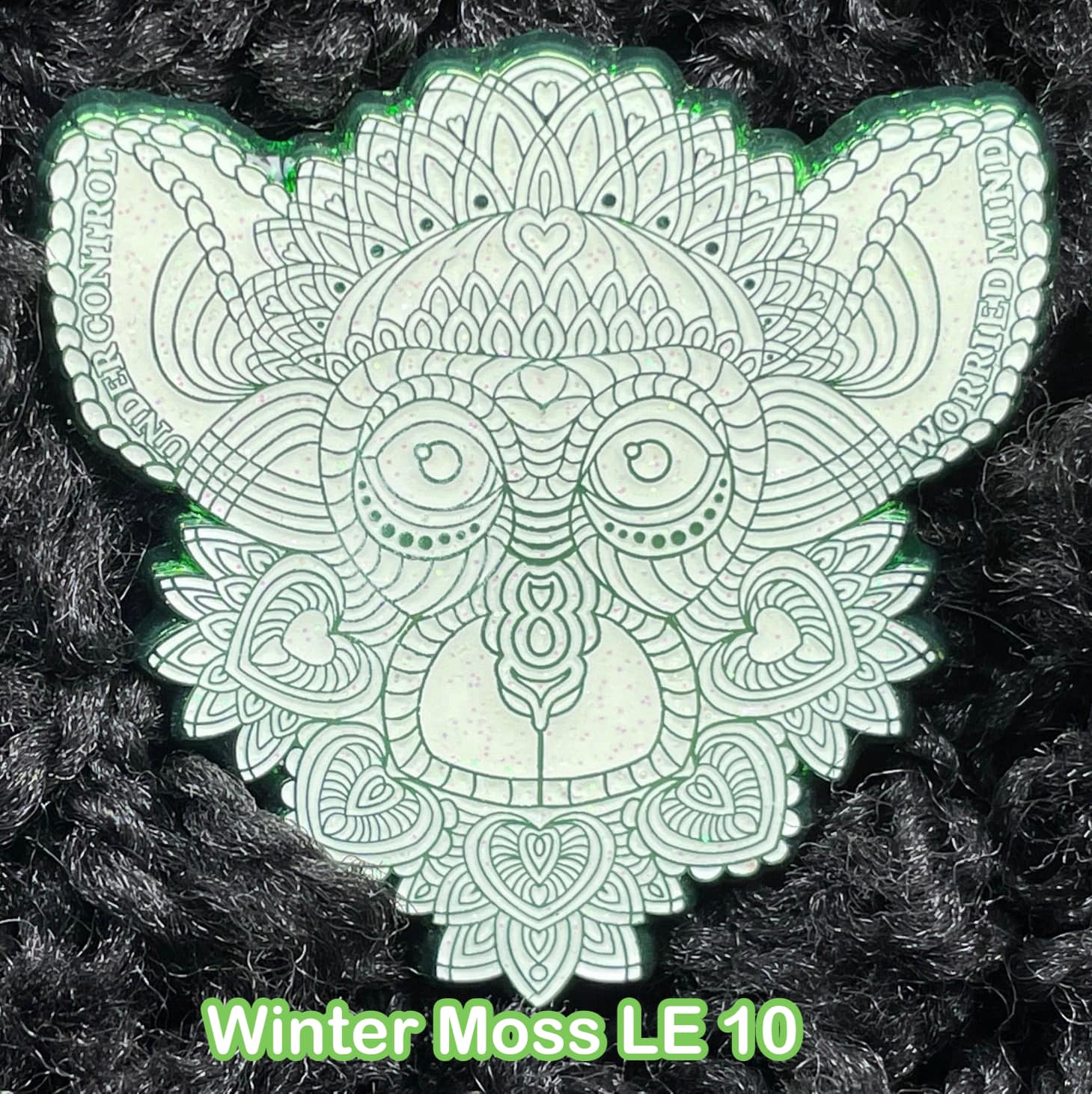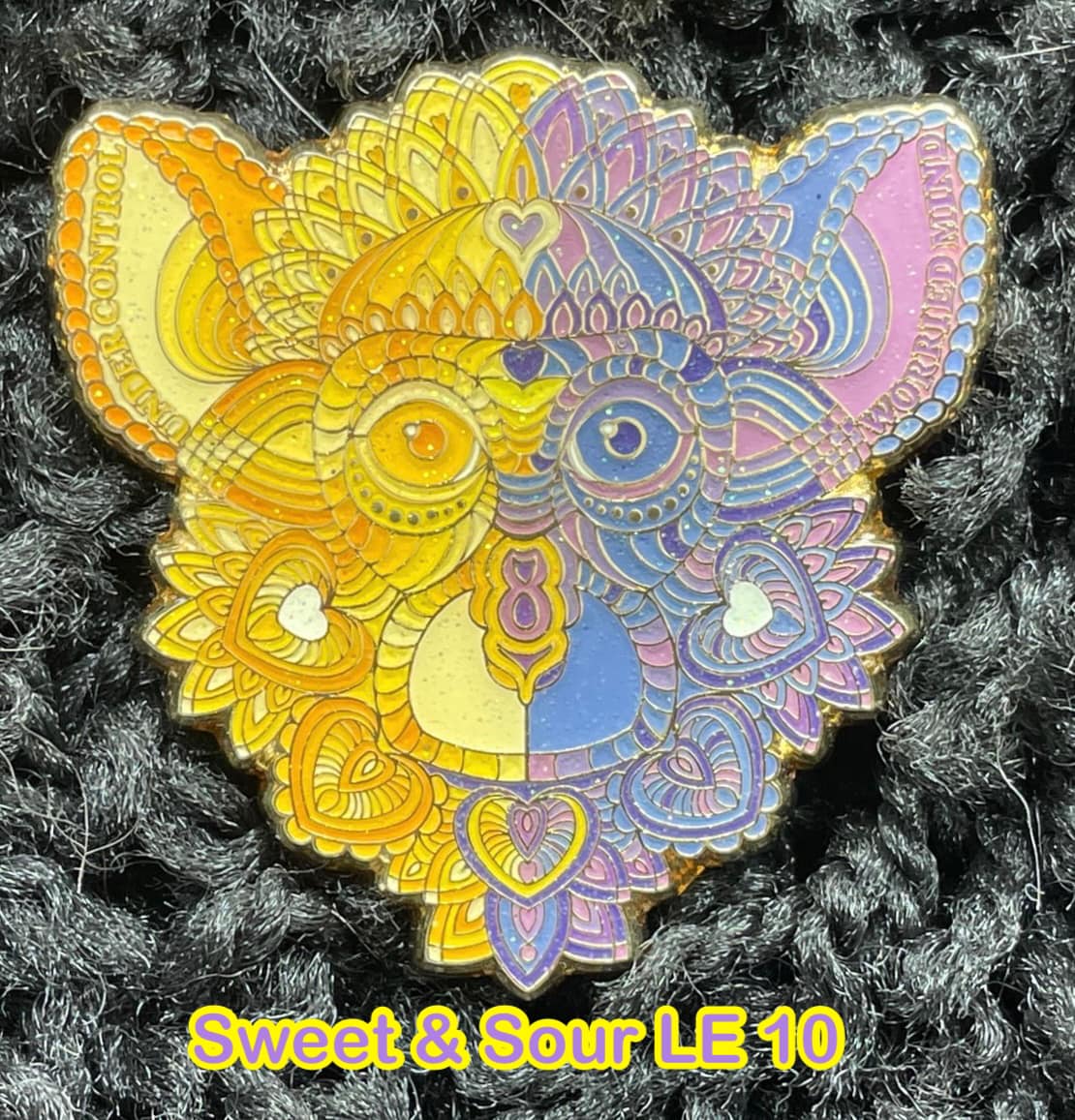 Bobby sang us The Monkey and the Engineer many, many times. While designing this pin, we decided the human is state of mind is somewhere between, Under Control and having a Worried Mind. Although the writer never intended this, once realized, I could never undo the thought.